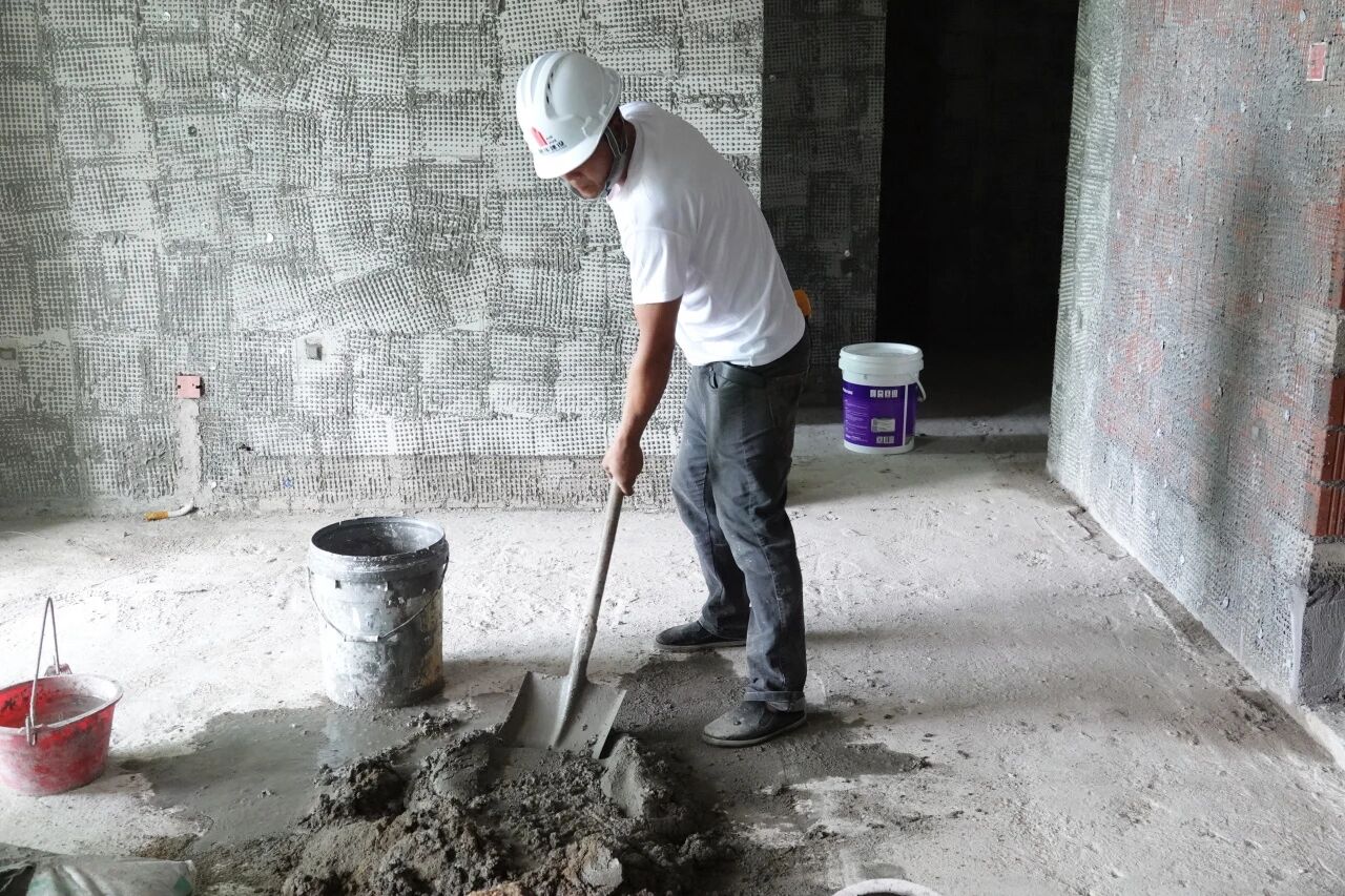 随着比赛开始的一声令下,选手们迅速进入赛场,手持腻子板、托着灰板,甩浆、拉毛、挂网、抹灰饼,精准控制平整度、垂直度,整个过程忙而有序、有条不紊,展现出相应的抹灰技艺水平,形成了“比学赶超”的良好氛围。