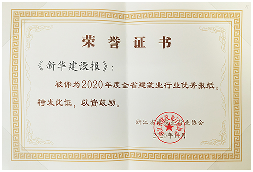 新华建设报荣获2020年度浙江省建筑行业优秀报纸奖